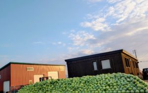 越冬キャベツの収穫が終わり、事務所の横に積み上げました。あとは雪が降り積もるのを待ち、スーパー、レストラン、直売所などで販売します。3月初旬までに完売目指します。